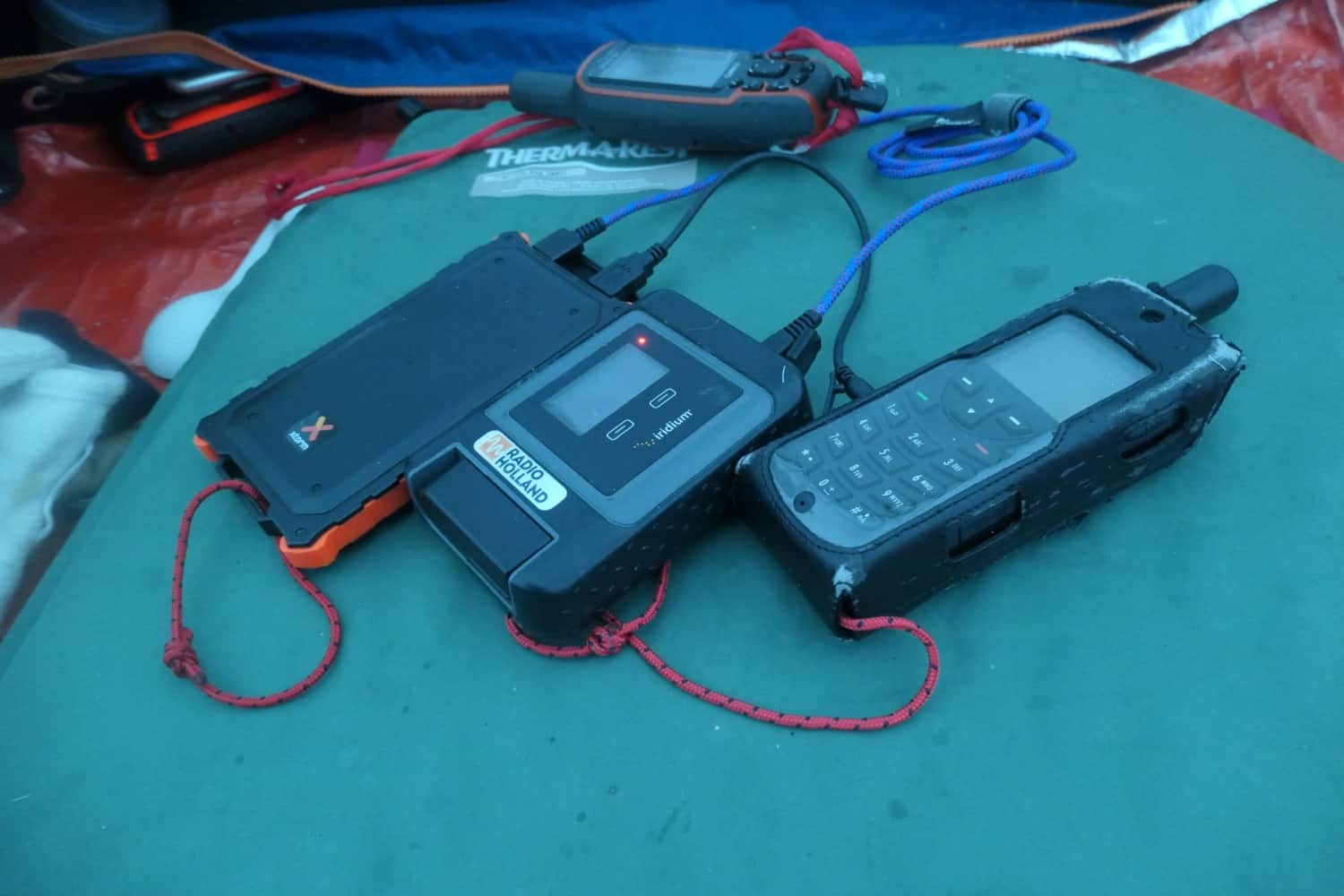 De Iridium Go is een ander handig apparaatje dat we bij ons hebben. Het fungeert als een wifi hotspot in onze tent, waardoor we beeldmateriaal vanaf onze mobiele telefoon kunnen verzenden naar de Basecamp manager. Deze kan dan af en toe foto’s delen op Instagram, Facebook of bij audioblogs. De Iridium Go stelt ons ook in staat om e-mails te versturen, hoewel dit proces erg traag verloopt. Het is vergelijkbaar met de oude inbelmodems van vroeger. Ondanks de langzame verbinding is de Iridium Go een waardevol communicatiemiddel voor het doorsturen van foto’s en e-mails.